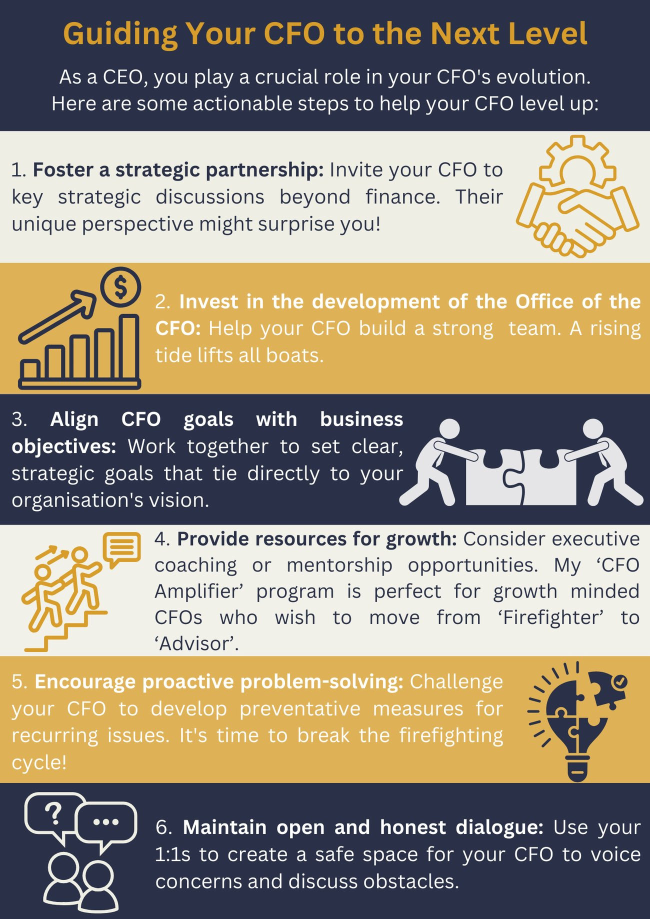Everyone loves a summary and a 'cheat sheet'. I hope you find this helpful and can spark some fresh thinking, conversations and actions for the new financial year. Who knows, maybe this will be your best year yet - accelerating up the CFO of the future journey by saying no more!