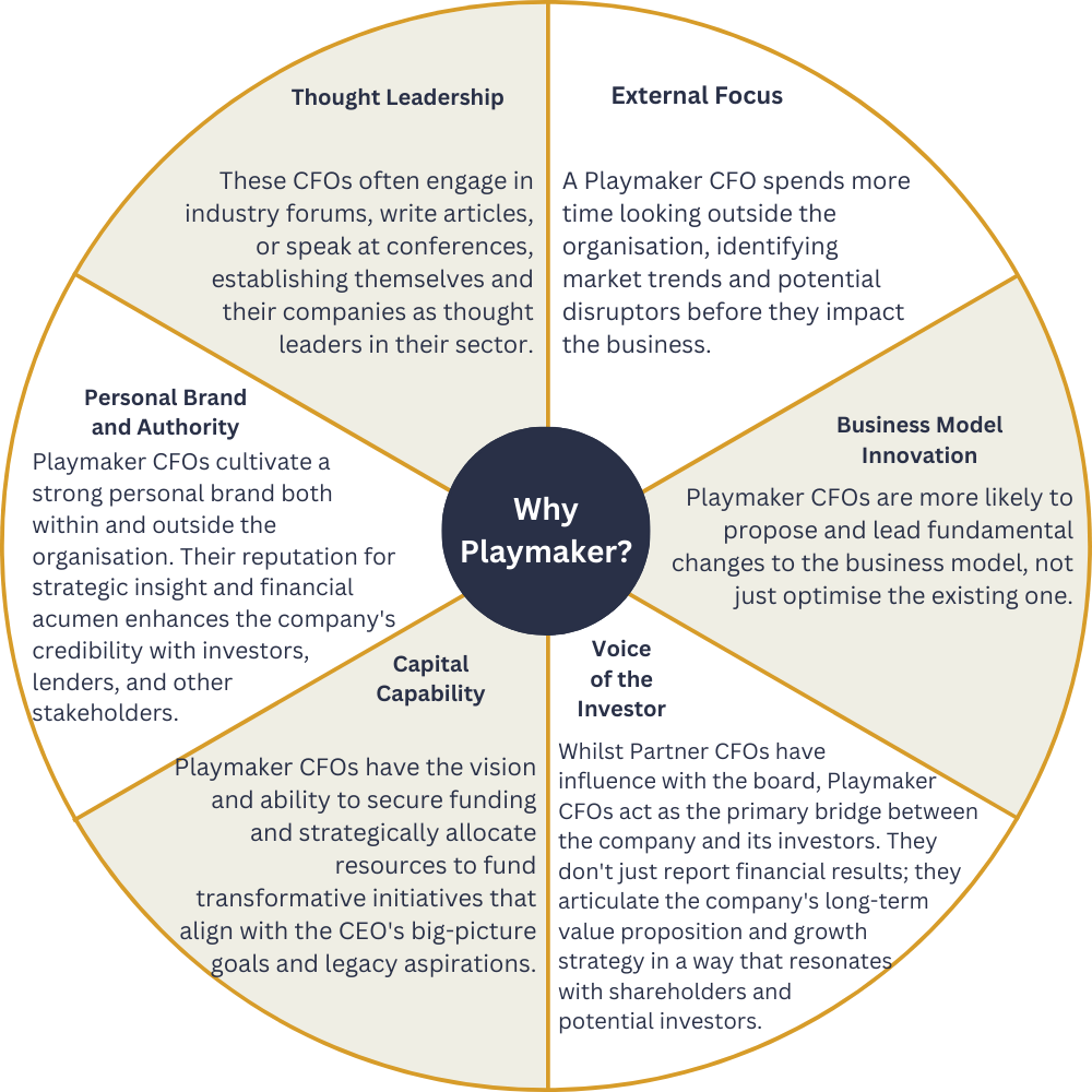 Here's how a Playmaker CFO differs from a Partner CFO in their behaviour and impact:
