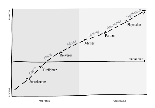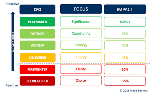 The below descriptions and definitions of the key components of being a Playmaker are sourced from the CFO of the Future Index report which my clients receive after completing the diagnostic of the same name. It is a diagnostic tool I created to sit alongside my second book, CFO of the future, which is where I comprehensively documented the CFO journey.