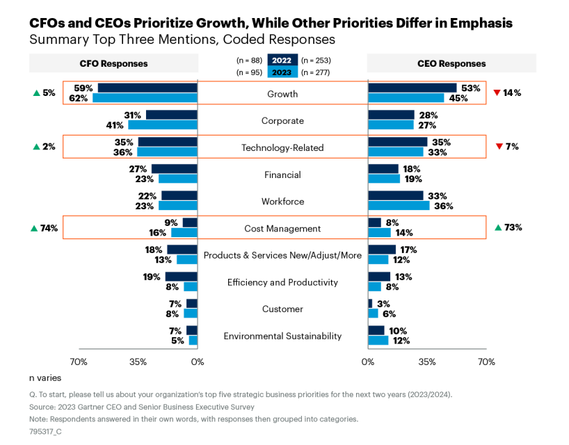 Gartner recently released their CFO perspective on the 2023 CEO survey which details how CFO and CEO priorities differ for 2023 and 2024.