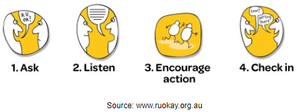 The RU OK day website has useful resources to help you help others around you. I encourage you to take a look, but here are the 4 simple steps you can take to check in with others:
