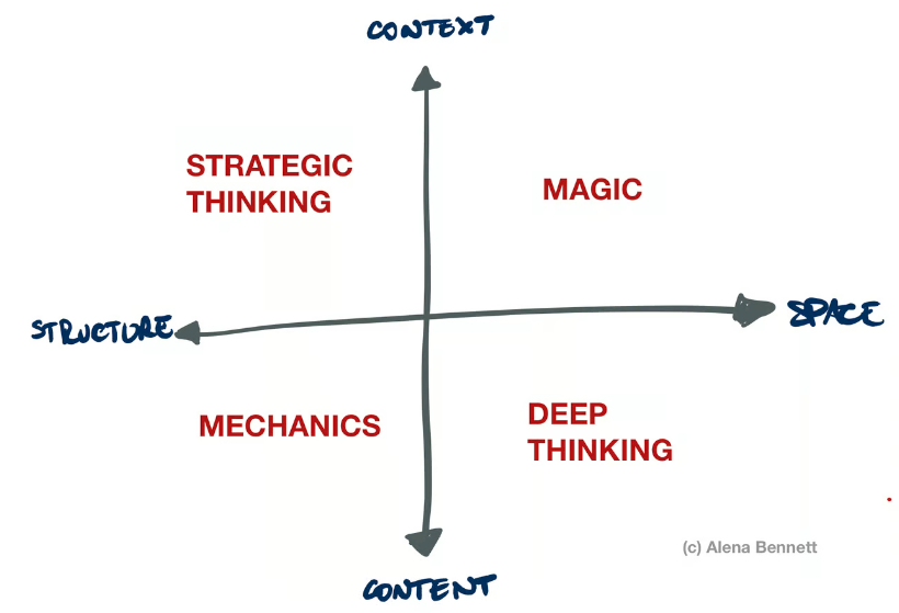 I invite you to consider the below model which is a framework I use to help ensure team offsites deliver the outcomes my CFOs, CEOs and Board Chairs need. What do you need most from your offsite: more mechanics, deep thinking, strategic thinking or a bit of magic to spice things up? Maybe it's a bit everything?