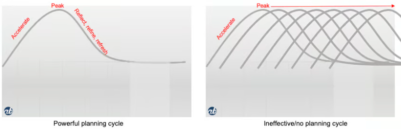 1. When there is a lack of downtime due to business pressures, planning allows your team to catch their breath. It allows them to draw a line in the sand to say 'tomorrow will be different' and to reset and refresh habits and behaviours that may have dulled like an overused knife. Giving your team the space to plan well not only creates clarity, but injects energy into what might be an otherwise fatigued or uninspired team.