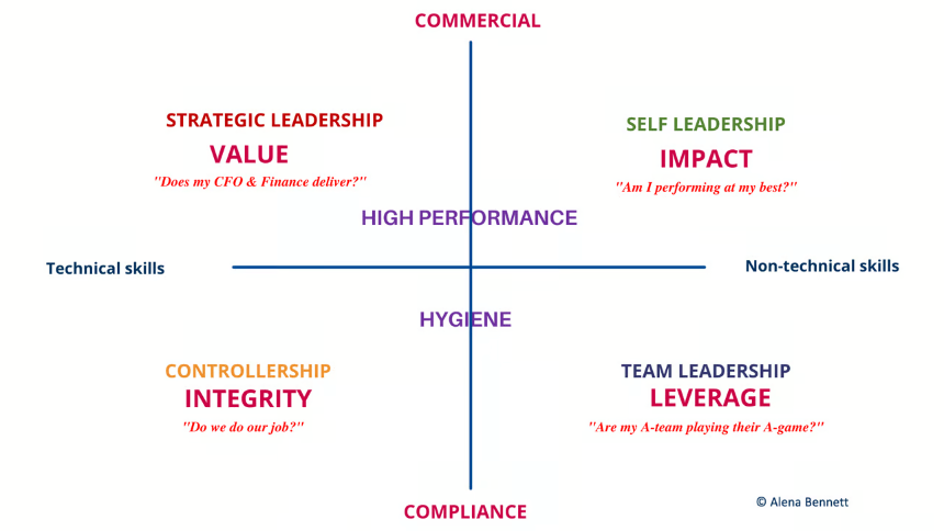 Let me briefly remind you how the 4 Quadrants of CFO Leadership have been developed. They encompass the expanded remit of today and tomorrow's CFO, including both non-negotiable technical skills and amplifying non-technical skills (X-axis) and the commercial and compliance domains (Y-axis). More and more I'm being told by CFOs that they 'need to be more commercial' so it stands to reason that their focus needs to be 'above the line'. The challenge, of course, is that we can't ignore the 'below the line' activities which is why we call the 4 quadrants of CFO leadership an 'inclusive' quadrant model. Our job is to know when to dial up/down our focus in each quadrant to achieve our priorities. It's a bit like a DJ – they need to know what songs to fade in/out and mix with each other to keep people on the dance floor all night!