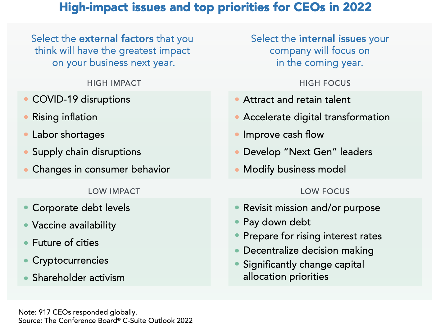 [2] The Conference Board C-suite Outlook 2022, December 2021 and CEO Predictions, Time, January 2, 2022